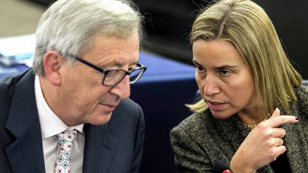 Jean-Claude Juncker and Federica Mogherini at the plenary session of the European Parliament in Strasbourg, January 13, 2015 (–Euranetplus-inside.eu)