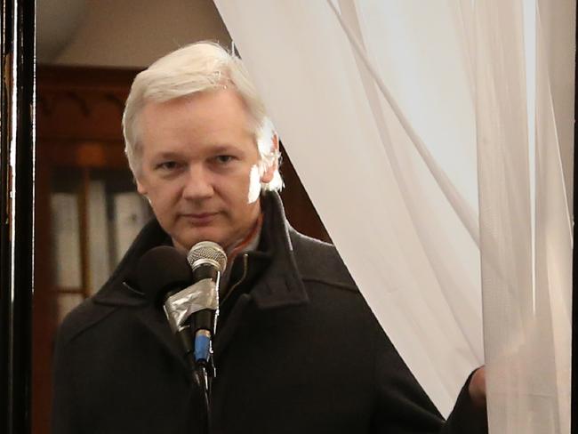 Julian Assange at the Ecuadorean embassy, London. (--Peter Macdiarmid/Getty Images)