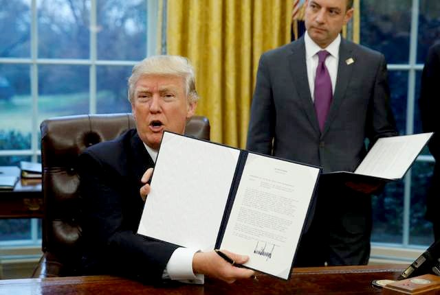 Trump signs executive order withdrawing US from Trans-Pacific Partnership (–Las Vegas Review-Journal)