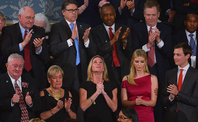 We are blessed to be joined tonight by Carryn Owens, the widow of a U.S. Navy Special Operator, Senior Chief William “Ryan” Owens. Ryan died as he lived: a warrior, and a hero – battling against terrorism and securing our nation. I just spoke to General Mattis who reconfirmed that, and I quote, “Ryan was a part of a highly successful raid that generated large amounts of vital intelligence that will lead to many more victories in the future against our enemies.” Ryan’s legacy is etched into eternity. For as the bible teaches us, there is no greater act of love than to lay down one’s life for one’s friends. Ryan laid down his life for his friends, for his country, and for our Freedom – we will never forget him.